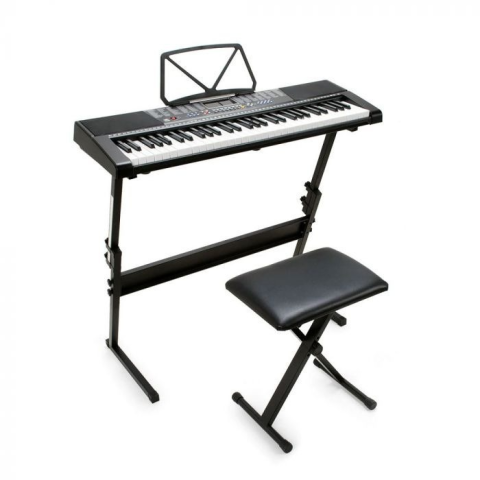 Szintetizátor 61 billentyűvel Fedezd fel a zenélés örömét ezzel a 61 billentyűs szintetizátorral, amely tökéletes kezdők számára! A komplett csomag mindent tartalmaz, amire szükséged lehet: állvány, szék, kottatartó, mikrofon és adapter is jár hozzá. Az