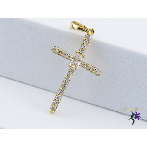 1 kép Szira antiallergén kereszt medál cirkónia kövekkel-14K