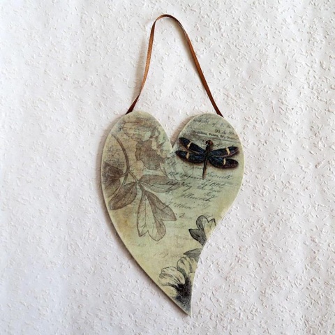 Szív alakú falapra dekupázstechnikával készült falikép, csodás dísze lehet otthonodnak. Egyedi kézműves termék