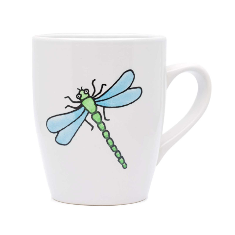 Szitakötős bögreA bögre a mintával átellenes oldalon név felirattal személyessé tehető. Mosogatógépben tisztítható, mikrohullámú sütőbe betehető.