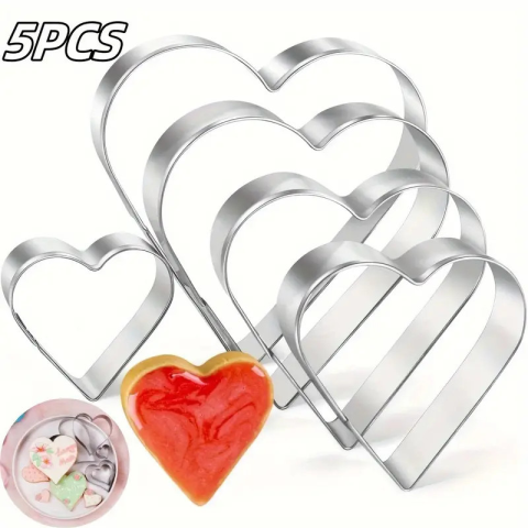 A csomag tartalmaz 5 darab szív alakú fém kiszúrót. Használható tésztához,fondanthoz,marcipánhoz. Méretei a képek között található. Anyaga: fém