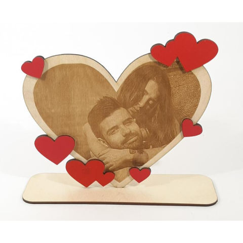 Fa rétegelt lemezből készült 3 mm vastag gravírozott szív alakú fa kép. Festett piros szívekkel díszítve. Egészségre ártalmatlan vízbázisú festékkel készült! Mérete: kb 20 x 18 cm. A talp kb 22x 7 cm. Minél jobb minőségű a fotó, minél jobb a felbontása an