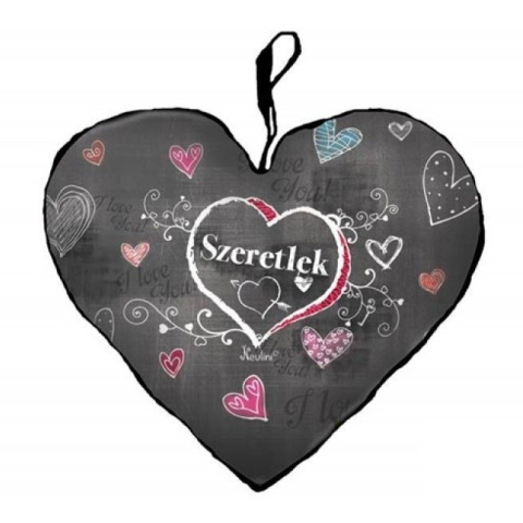 1 kép Szív alakú párna, Szeretlek, krétával rajzolva