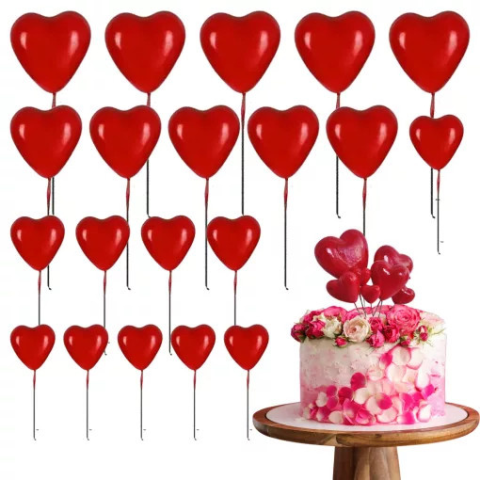1 kép Szív alakú, piros színű tortadísz,tortadekoráció 20 db/csomag