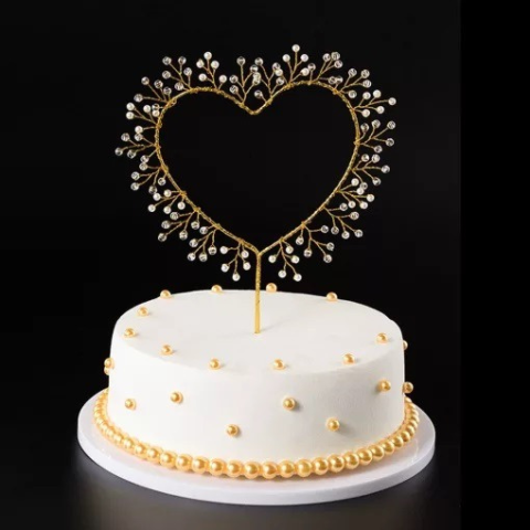 1 kép Szív alakú tortadísz, torta beszúró gyöngyökkel-Arany