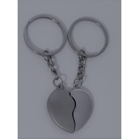 Ezüst színű szív alakú kulcstartó. Két fél szív amit mágnes fog össze. Egyiket add a kedvesednek,másikat tartsd meg! Gravírozható,az árban benne van a gravírozás ára. Mérete kb. 3 x 3,5 cm,hossza pedig a láncos kulcskarikával együtt kb 8,5 cm.
