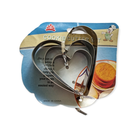Praktikus 3 darabos, különböző méretű fém sütemény kiszúró forma, melynek segítségével egyszerűen készíthet szív formájú süteményeket, kekszeket. Termék jellemzői: anyaga: rozsdamentes acél
