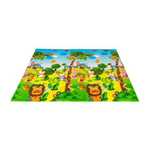 Szivacs játszószõnyeg 180x200cm Lion A kétoldalú összehajtható szõnyeg színes és változatos mintákat és textúrákat kínál, amelyek segítik fejleszteni a babák látását és tapintását. Tele van állatok képeivel, amelyek támogatják a legfiatalabb felhasznál