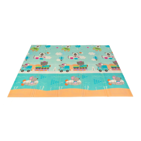 Szivacs játszószõnyeg 180x200cm Vehicles A kétoldalú összehajtható szõnyeg színes és változatos mintákat és textúrákat kínál, amelyek segítik fejleszteni a babák látását és tapintását. Tele van állatok képeivel, amelyek támogatják a legfiatalabb felhas