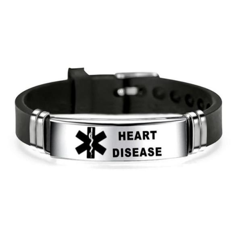 Állítható szívbeteg karkötő rozsdamentes acéllal és szilikon pánttal. Egészségügyi figyelmeztető karkötő, amely vészhelyzetben életmentő lehet