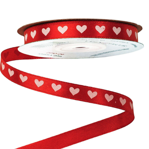 Szívecskés szatén szalag 10mm x 20m - Piros