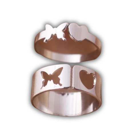 Különleges szíves és pillangós páros gyűrűk állítható méretben, ideális ajándék szerelmeseknek, évfordulóra vagy születésnapra