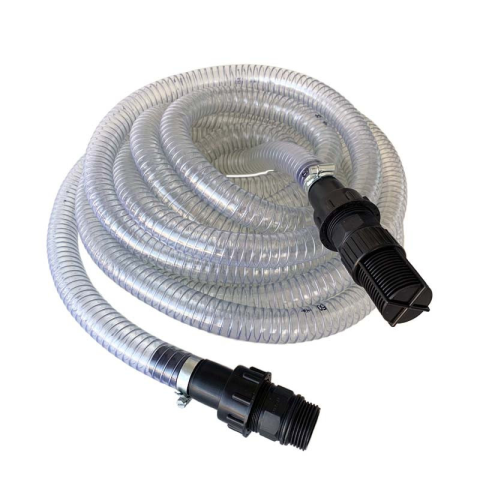 Felszíni szivattyúkhoz 1-os szívótömlő készlet. Kiváló minőségű anyagból készült 7 m-es acélmerevítésű 1-os szivócső készlet, ami szűrőkosaras lábszeleppel van ellátva. Üzemi nyomás: 5 bár Tesztnyomás: 13 bár
