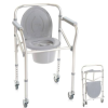 - összecsukható - állítható magasságú - alumínium - görgős - két hátsó kerék fékezhető - 4 funkciós:WC magasító szék, szoba WC, komód szék és zuhanypad - méret: szélesség szélesség 50 x hossz 43x teljes magasság 64-74 cm - állítható magasságú 44cm és 57 c