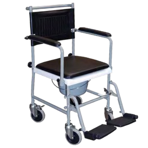- 4 kerékkel - 2 kerék fékezhető - komplett vödörrel - párnázott ülőkéve - Ülés és takarólemez - Elfordítható és kivehető lábtámaszok - felhajtható kartámaszok - 4 forgatható kerék - toalett magassága kb. 41 cm - Ülésmagasság: kb 53 cm - Ülőfelület: kb. 4