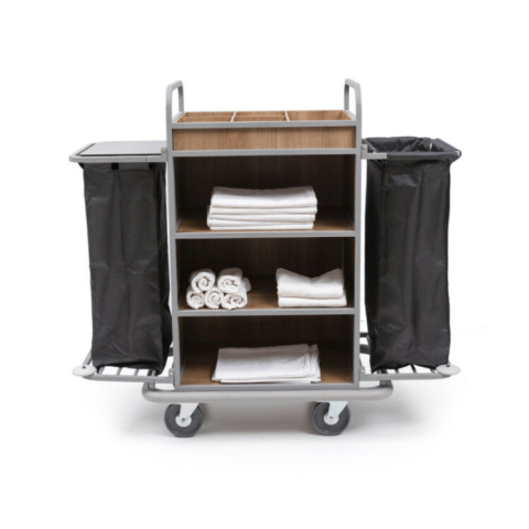 Szobaasszonyi kocsi: Praktikus és strapabíró segítség a takarításhoz 🧹 Ez a minőségi szobaasszonyi kocsi megkönnyíti a mindennapi takarítást. Strapabíró, festett szürke fémvázzal és 3 erős fapolccal rendelkezik, így elegendő helyet biztosít a takarít...
