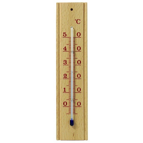 Szobahőmérő 2043 típusNatúr fa színű hátlappalMérési tartomány:-5°...+50°COsztásköz: 1°C, borszesz töltésselMéret:190x43mm