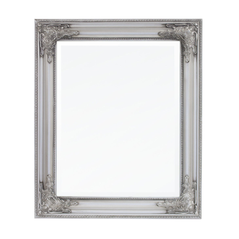 Szögletes élcsiszolt fali tükör díszes ezüst blondel fa keretben 62x52x3,5cm bútor termékleírás