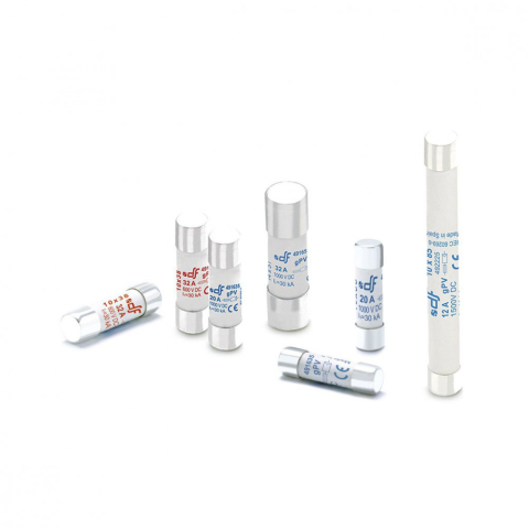 Hengeres olvadó biztosító betét napelemes rendszerekhez Névleges áram: 16A Mérete: 38mmx10mm Karakterisztika: gPV