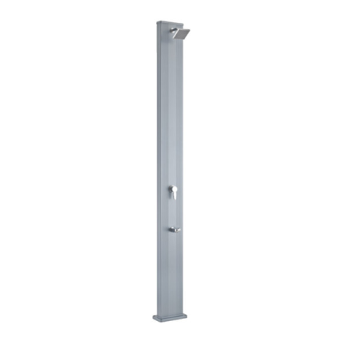 Hideg-meleg vizes alumínium ezüst hatású szolárzuhany, 28 literes tartállyal, lábmosóval, krómozott csapteleppel. Alumínium szolárzuhany Alumínium ezüst hatású szolárzuhany, 28 literes tartállyal. A szolárzuhany nem csak a medencehasználó komfortjához