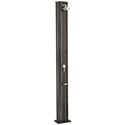 Hideg-meleg vizes alumínium fekete szolárzuhany, 40 literes tartállyal, lábmosóval, krómozott csapteleppel. Alumínium szolárzuhany Alumínium fekete szolárzuhany, 40 literes tartállyal. A szolárzuhany nem csak a medencehasználó komfortjához járul hozzá,
