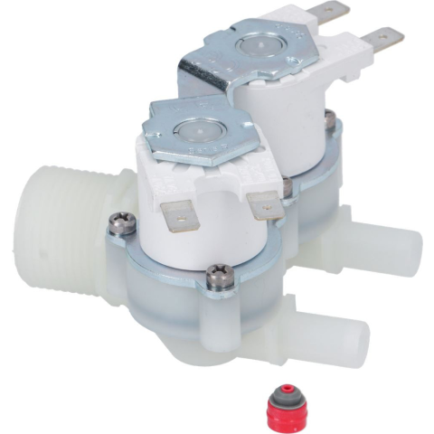 230V 50/60Hz - max. hőmérséklet 60°C | bemenet 3/4' - két kimenet ø 10,5 mm | 1 kimenet piros áramlásszabályozóval