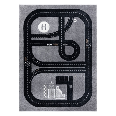 Hakano BEO TRACK Gyerekszőnyeg – Szürke Versenypálya Design 🏎️ Varázsolja a gyerekszobát egy izgalmas versenypályává a Hakano BEO TRACK szőnyeggel! Ez a 160x220 cm-es szürke szőnyeg nem csak puha és kényelmes, de a rajta lévő versenypálya mintázat órá...