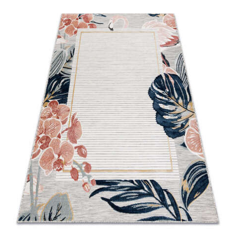 Szőnyeg BOTANIC 65240 Flamingó, levelek lapos szőtt - szürke 157x220 cm lakástextília 1 kép