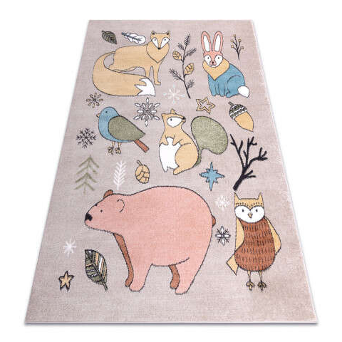 1 kép Szőnyeg FUN Forester gyerekeknek, állatok, erdei bézs 140x190 cm