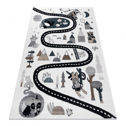 Szőnyeg FUN Route gyerekeknek, utca, állatok krém 80x150 cm lakástextília termékleírás
