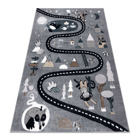 Szőnyeg FUN Route gyerekeknek, utca, állatok szürke 140x190 cm lakástextília termékleírás
