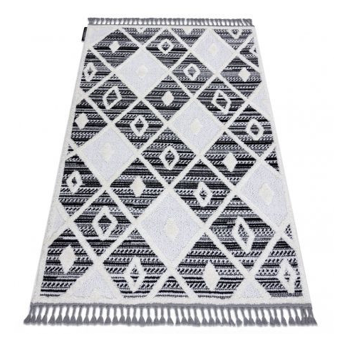 Szőnyeg MAROC P662 gyémánt fekete / fehér Rojt Berber shaggy 120x170 cm lakástextília termékleírás