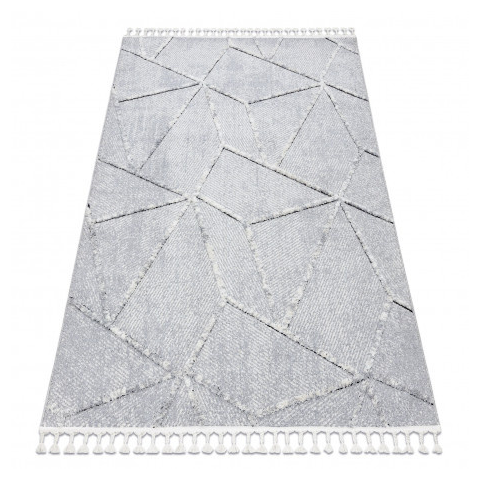 Teljes Szőnyeg SEVILLA Z791C mozaik szürke / csík fehér Rojt Berber shaggy 240x330 cm termékleírás