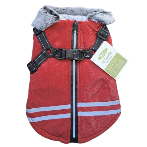 Szőrmegalléros Fényvisszaverő Kutyakabát, piros, XL-es