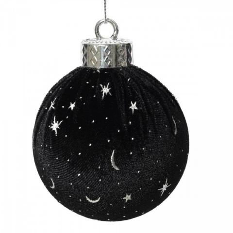 Szöveg bevonatos gömb hold és csillagok 8cm karácsonyfadísz 1 kép