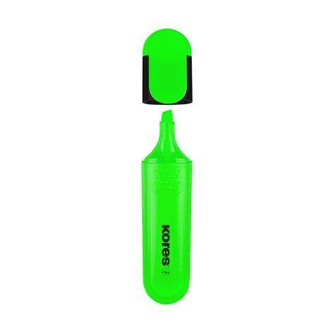 Szövegkiemelő, 0,5-5 mm, KORES, zöld - vágott hegy - élénk szín, a tinta színével megegyező tolltest - klippel ellátott kupak - vízbázisú tinta - vonalvastagság: 0,5-5 mm - UV-álló Gyártó/első EU forgalmazó elérhetősége: Kores Europe s.r.o. Nivka
