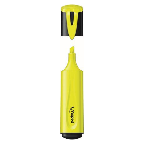 Szövegkiemelő, 1-5 mm, MAPED Fluo Peps Classic, sárga - vágott hegy - élénk színek - normál, fénymásoló- és faxpapírhoz is ajánlott - nem szárad be 4 óra után sem kupak nélkül - a tinta színével megegyező műanyag tolltest - klippel ellátott kupak - von