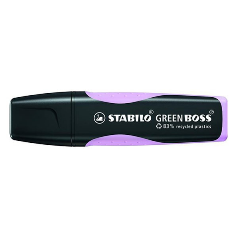 Szövegkiemelő STABILO Green Boss pasztell orgona lila környezetbarát STABILO GREEN BOSS ORIGINAL Pastel szövegkiemelő. 83%-ban újrahasznosított műanyagból készült. Újratölthető a STABILO BOSS ORIGINAL patronokkal. Kiszáradás elleni technológiája mia