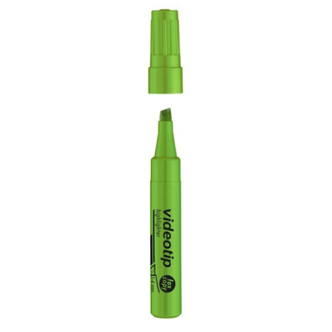 Szövegkiemelő Videotip zöld Írásvastagság: 1–4 mm Típus: Írásszín: zöld speciális, fluoreszkáló festékkel töltött szövegkiemelő a kiemelt szöveg fénymásolható, faxolható XXL: megnövelt élettartam a nagy méretű testnek köszönhetően