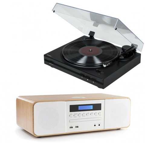 THOMSON TT350 Lemezjátszó & MIC201 Mini Rendszer: Éld át újra a zene varázsát! 🎶 Ez a sztereó szett tökéletes választás, ha szeretnéd újra felfedezni a bakelitlemezek hangzását, miközben élvezheted a modern technológia előnyeit. A szett tartalma:...