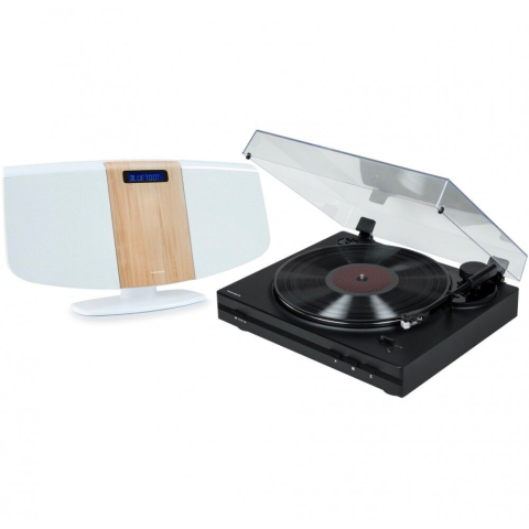 Sztereó szett lemezjátszóval THOMSON TT350 & MIC401 A szett egy teljesen automata Thomson TT350 lemezjátszót tartalmaz. A hangminőséget a cserélhető Audi-Technica AT3600L hangszedő biztosítja. Az elegáns lemezjátszó, fekete házban, könnyen...