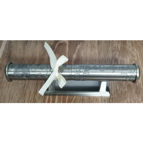 Keresztlevél tartó henger. Ezüst színű. Gravírozható!/az árban benne van/ Fém Anyakönyvi Kivonat Tartó Henger Termékleírás: Fedezze fel a stílusos és praktikus megoldást a fontos dokumentumok tárolására a fém anyakönyvi kivonat tartó hengereinkkel!