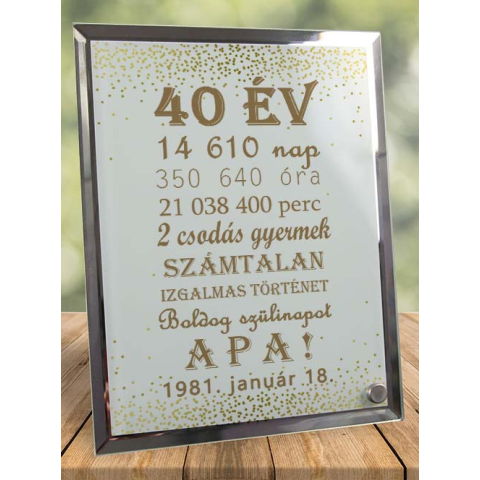 Születésnapi ajándék apának Boldog Szülinapot Apa fotóüveg. Boldog szülinapot Apa üvegfotó egyedi dátummal, felirattal. Egyedi és különleges ajándék minden Édesapának. Egyedi dátummal kérhető így teljesen személyre szabható. A fotó magas hőfokon kerül a k