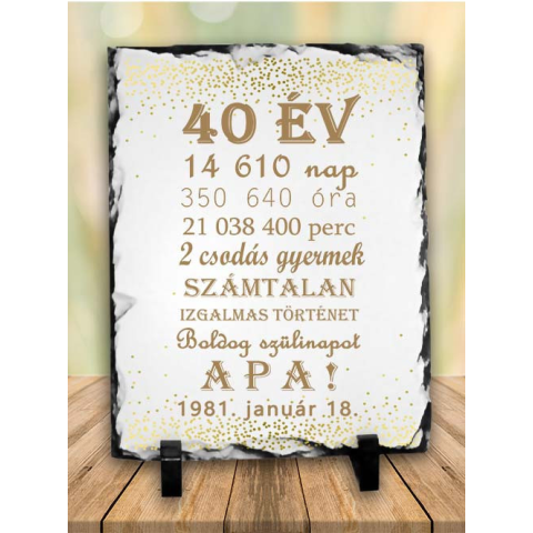 Születésnapi ajándék apának, Boldog Szülinapot Apa kőlap. Boldog szülinapot Apa kőlap egyedi dátummal, felirattal. Egyedi és különleges ajándék minden Édesapának. Egyedi dátummal kérhető így teljesen személyre szabható. A grafika magas hőfokon kerül a kő