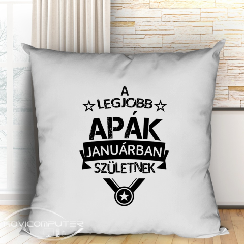 Születésnapi párna apának, ajándék apáknak. Ajándék apáknak. Kosárba helyezés előtt írd be milyen hónap kerüljön a termékre, majd válaszd ki a párna színét és mi küldjük is neked, a tökéletes ajándékot Édesapád születésnapjára. A párna mérete 40x40 cm,