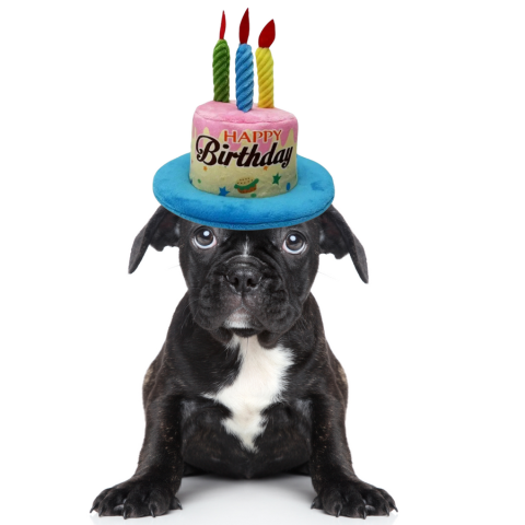 Születésnapi torta alakú kutyasapka, fiús, kék kutyaruha árgrafikon
