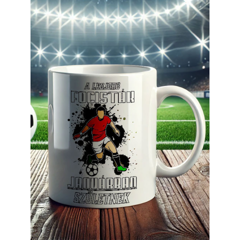 Szülinapi focis bögre, legjobb focisták. A legjobb focisták melyik hónapodban születnek? Egyedi és sportos bögre focistáknak és focirajongóknak, amely bármelyik hónappal kérhető, így teljesen személyre szabható! Ha a január helyett más hónapot szeretnél,