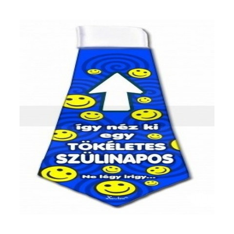 Szü,leté,snapi party nyakkendő "Í,gy né,z ki egy tö,ké,letes szü,linapos, Ne lé,gy irigy..." felirattal, ké,k szí,nben.Előre megkö,tö,tt gumis fazonAlapanyag: 100% polieszter mikró,szá,lMé,ret: 37 ,cm X 14 ,cm (legszé,lesebb ré,sz) ,