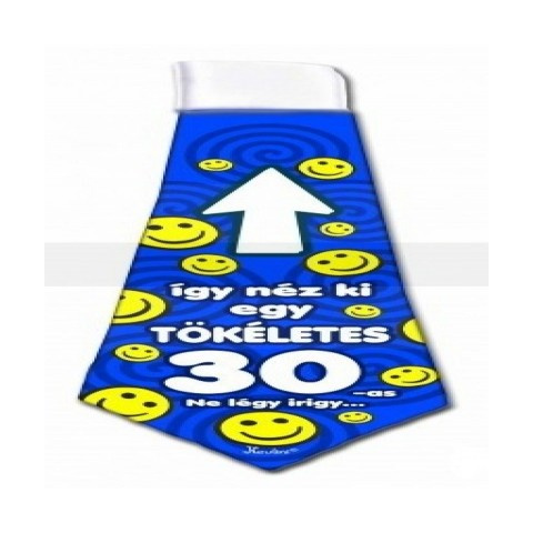 Szü,leté,snapi party nyakkendő "Í,gy né,z ki egy tö,ké,letes 30-es, Ne lé,gy irigy..." felirattal, ké,k szí,nben.Előre megkö,tö,tt gumis fazonAlapanyag: 100% polieszter mikró,szá,lMé,ret: 37 ,cm X 14 ,cm (legszé,lesebb ré,sz) ,