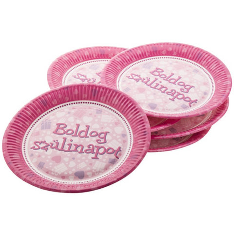 Szülinapi papírtányér 6 darabos - 23 cm, pink